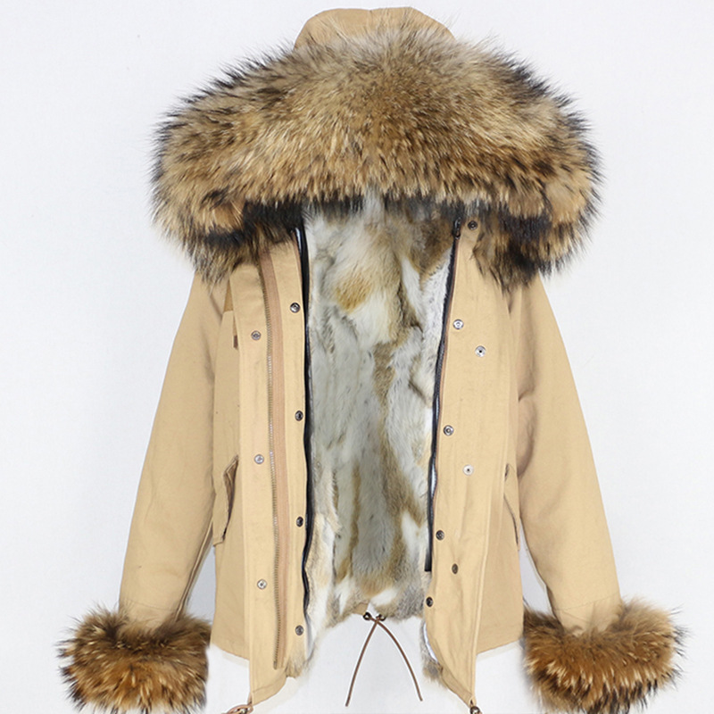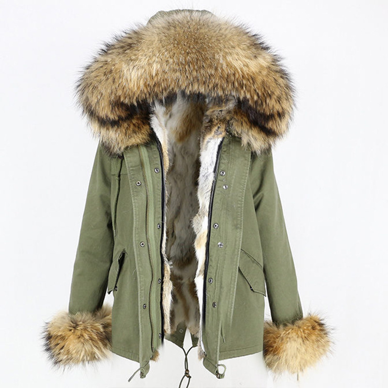 Women's Clothing Removable thickened rabbit fur lining new women's parka oversized raccoon fur collar fur short coat