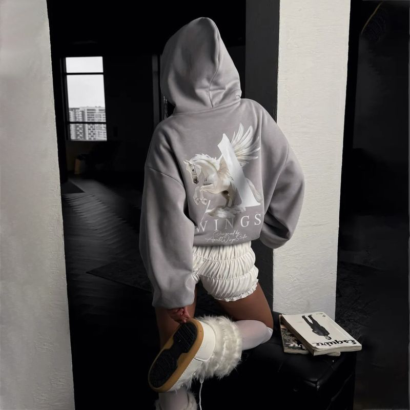 Women's Printed Winter Hooded Oversized Lazy Style Loose Sweatshirt Jacket