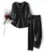 Women's Sleepwears Large Size Spring And Autumn Thin Three Quarter Sleeve Silk Pajamas Embroidered Lace Two Piece Set Women's Home Clothes