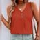 Women's V-Neck Button-Down Sleeveless Blouse - Casual Loose Fit Summer Top With Wave Pattern, Lightweight Polyester