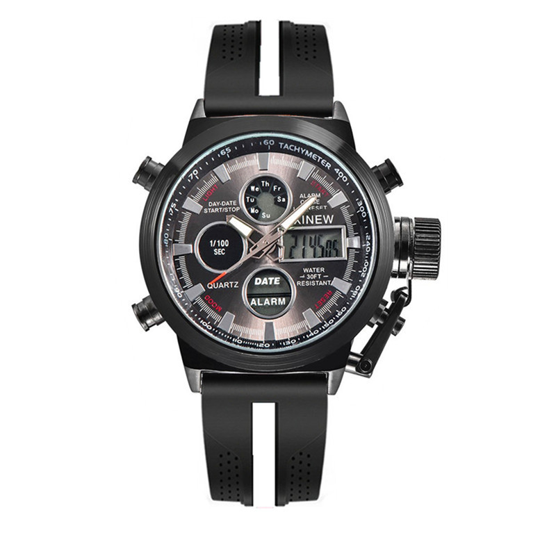 XINEW Men Rubber Band Sports Dual Time Multi function Watch