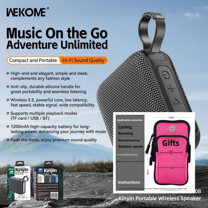 Upgrade your audio experience with the WEKOME WD-08 portable Bluetooth speaker and let pure sound quality accompany you every journey. At the same time, get a free sports arm bag to keep your belongings safe while exercising. Place an order now and start your music enjoyment journey!