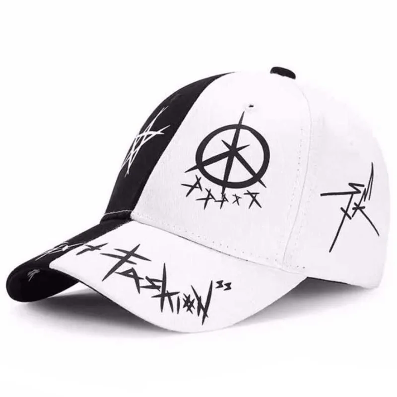 YOYOCORN New Student Young Men And Women The Spring Summer Sun Hat Cap And White Color Matching Pentagram Graffiti Baseball Cap